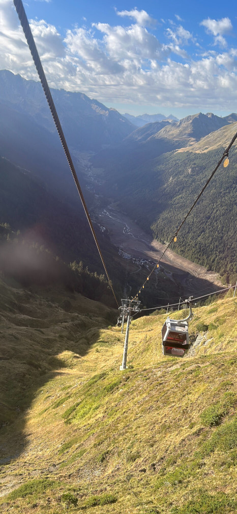 Le lendemain matin, je monte dans le téléphérique de la Sagette, puis dans le petit train d’Artourste (le train le plus haut d’Europe) durant 50 min. Je conseille de prendre le billet « escapade » qui permet de bien profiter de la journée. On se croit au Canada ! Le train passe à flanc de montagne. Une vue incroyable sur la vallée s’ouvre à nos yeux. Les marmottes se dressent au passage du train !