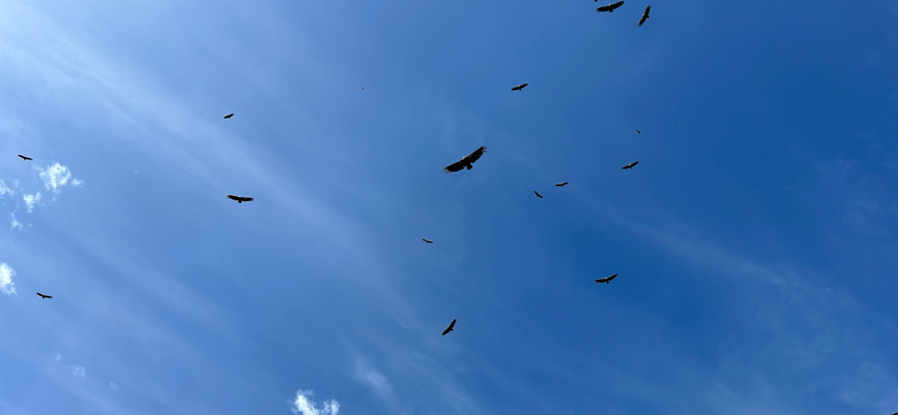 Je reprends la même route pour rejoindre le village d’Ancizan et là sur la route… un spectacle, une centaine de Vautours fauves survolent à basse altitude !! S’en doute un animal mort dans les alentours. La nature brute, voilà ce qu’offrent les Pyrénées !!